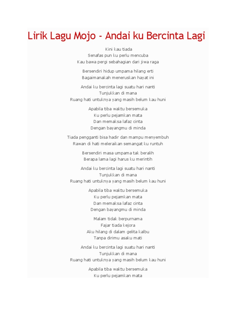 Andai Ku Bercinta Lagi Lirik Mojo Kkbox