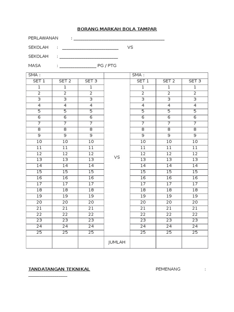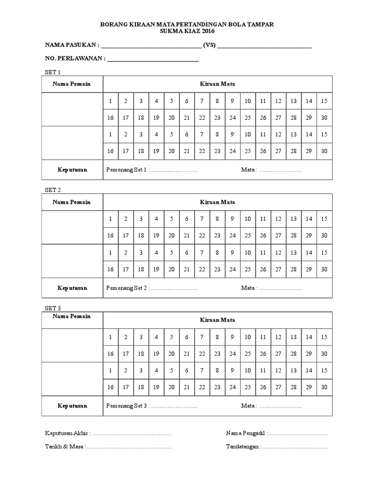Borang Skor Bola Tampar Pdf Document