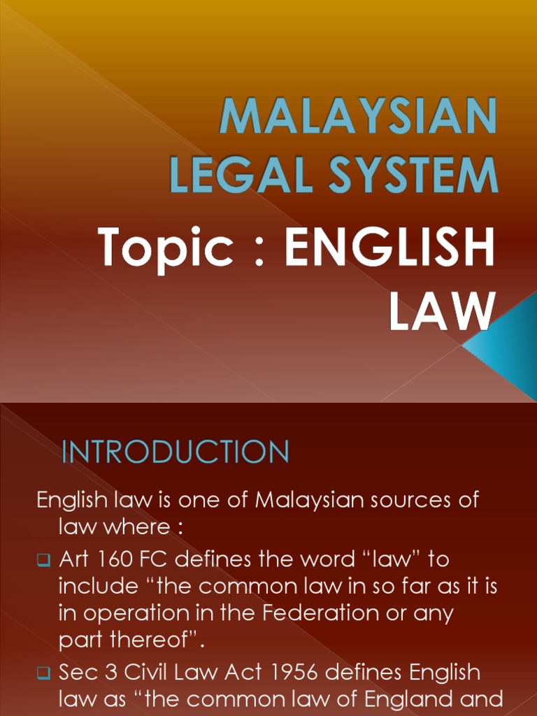Malaysian Legal System Sources Of Law English Law