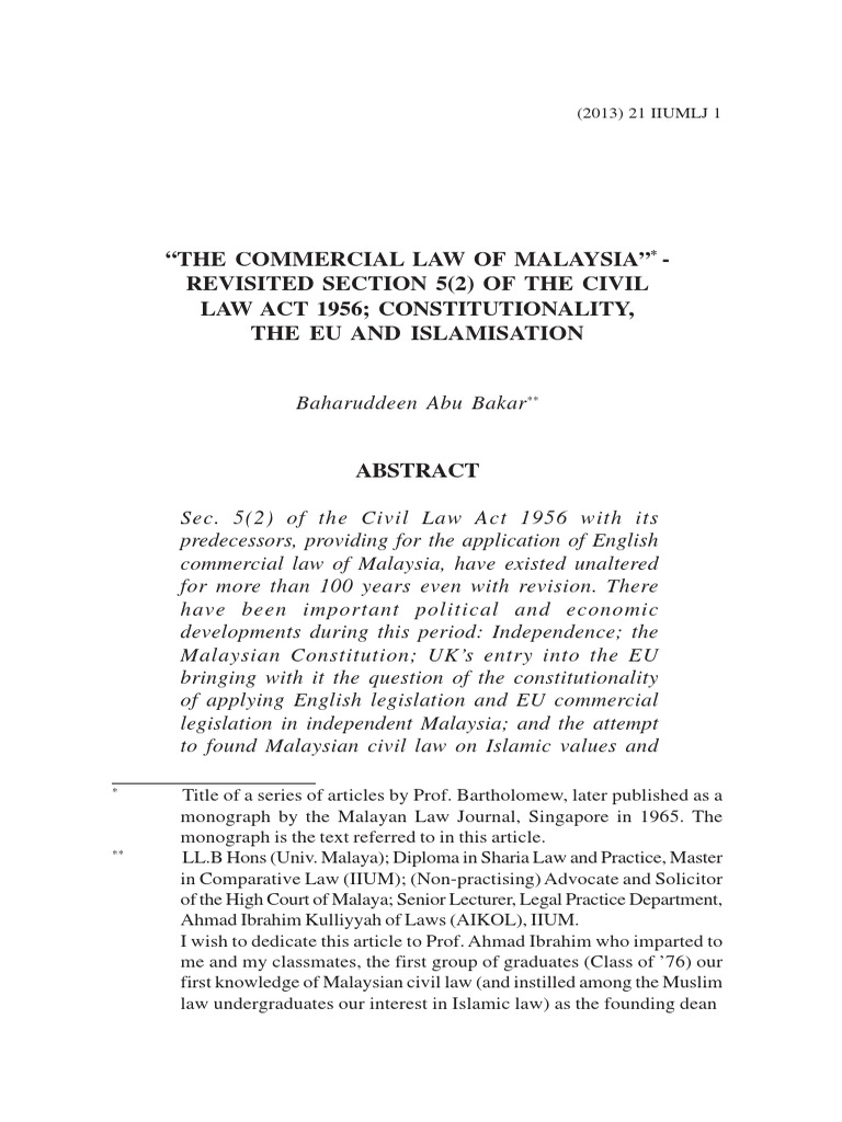 Reception Of English Law Under Sections 3 5 Of The Civil Law Act 1956 Revised 1972 Journal Of Malaysian And Comparative Law