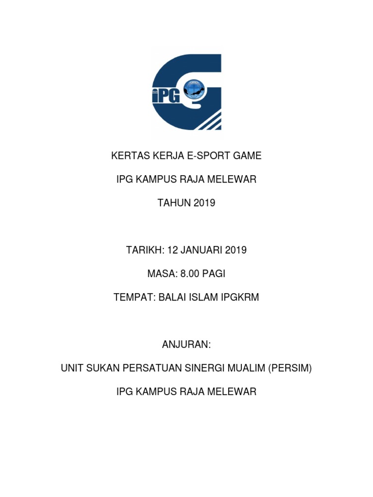 Kertas Kerja E Sport Day Docx Kertas Kerja Tajuk E Sport Day Tarikh Hari 29 March 2019 Jumaat Tempat Dewan Al Muktafi Billal Shah Universiti Sultan Course Hero