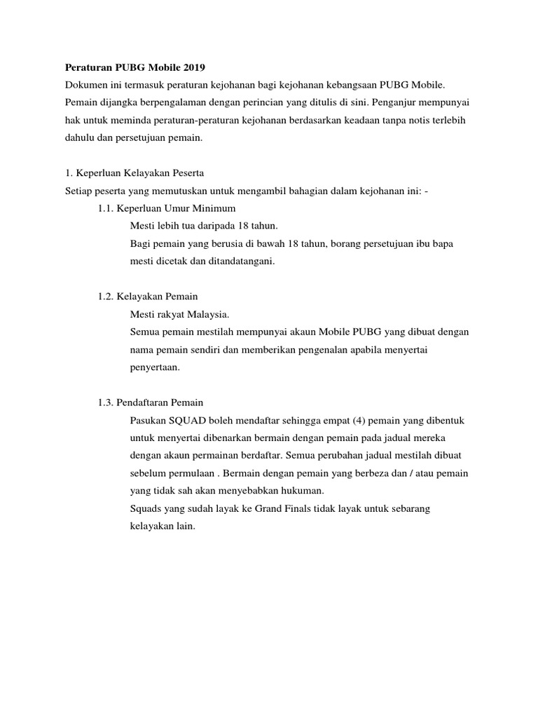 Peraturan Pubg Mobile Malaysia 2019 Docx