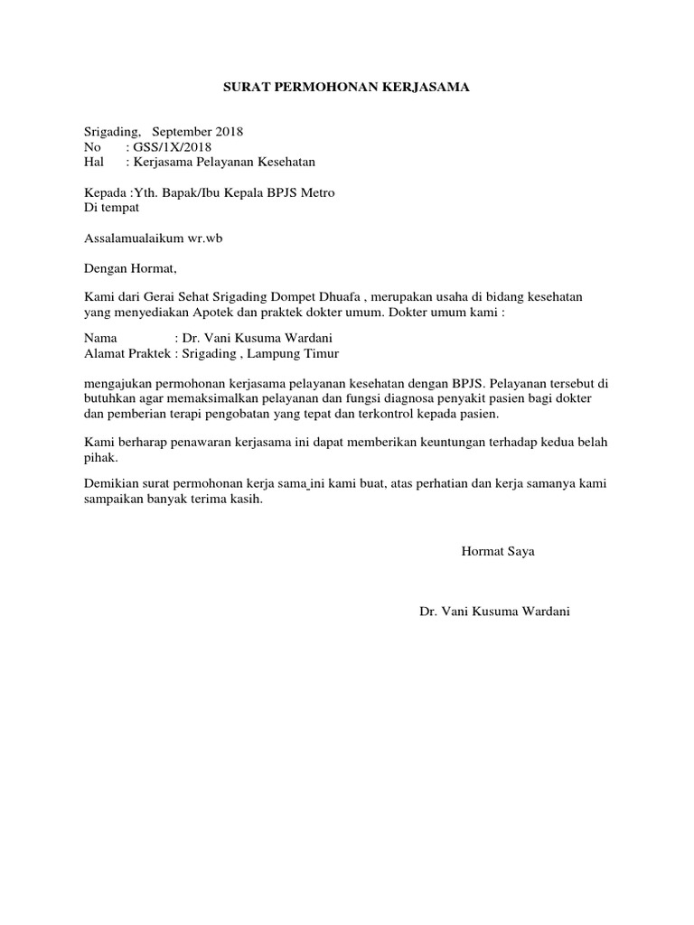 Contoh Surat Permohonan Kerjasama Dengan Bpjs Kesehatan