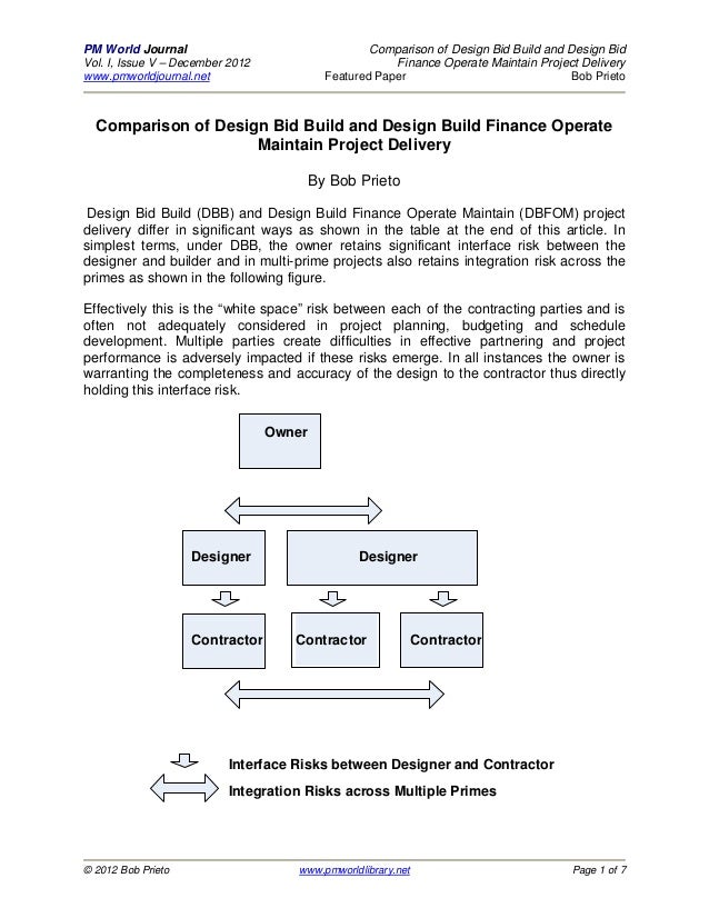 Comparison Of Design Bid Build Vs Design Build Finance Operate Mai