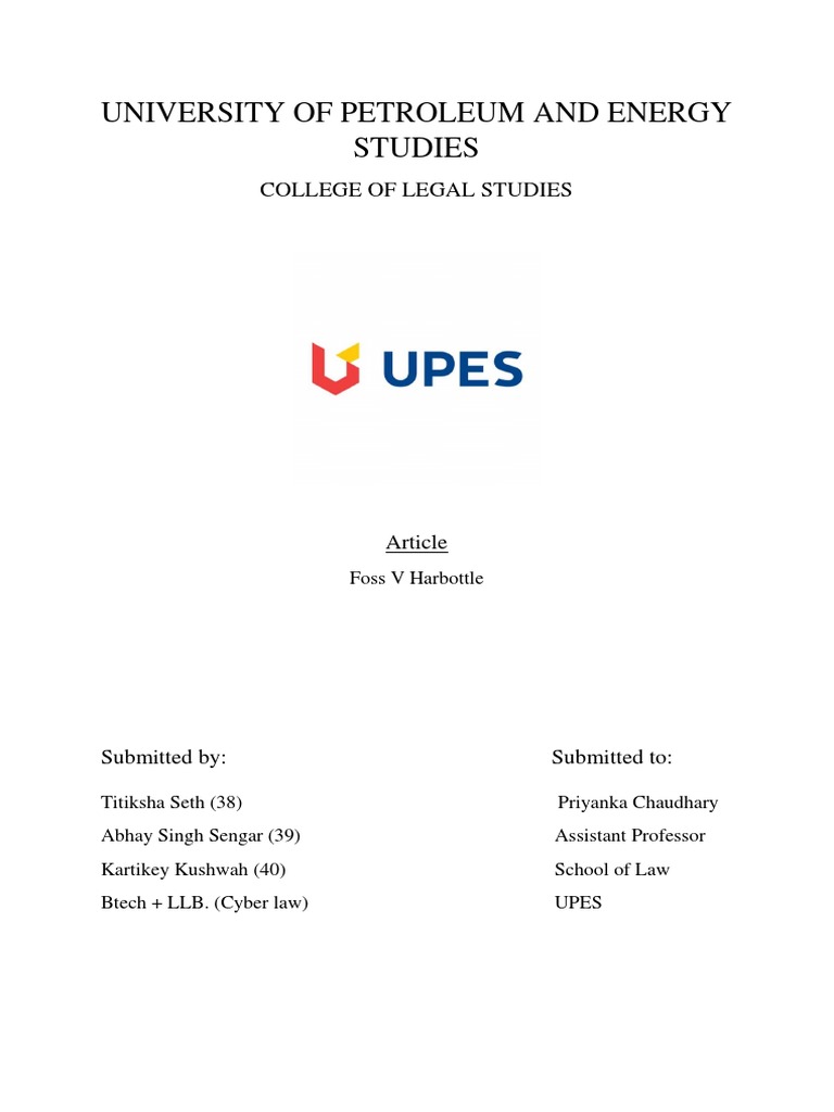 Case Summary Foss Vs Harbottle 1843 Lawlex Org