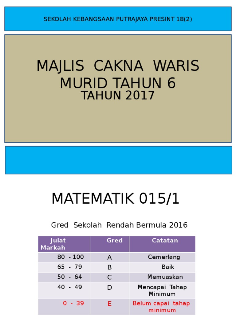Gred Pemarkahan Upsr Pt3 Dan Spm Terkini 2018 Mybelajar