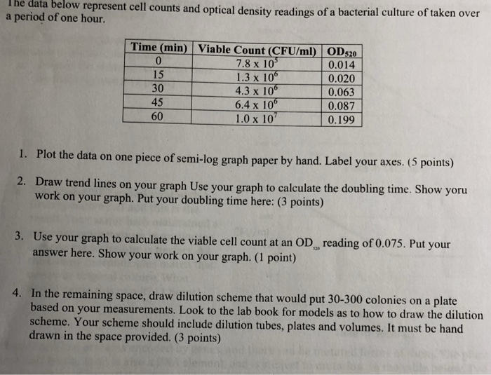 Solved The Data Below Represent Cell Counts And Optical D Chegg Com
