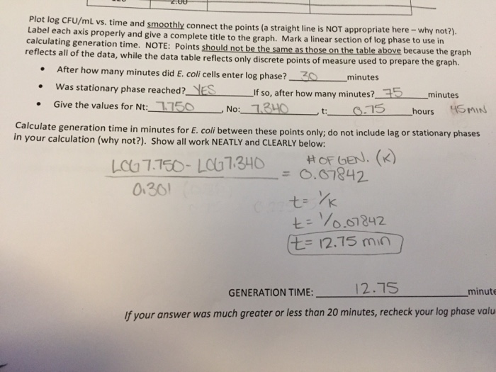 Solved Plot Log Cfu Ml Vs And Smoothly Connect The Point Chegg Com