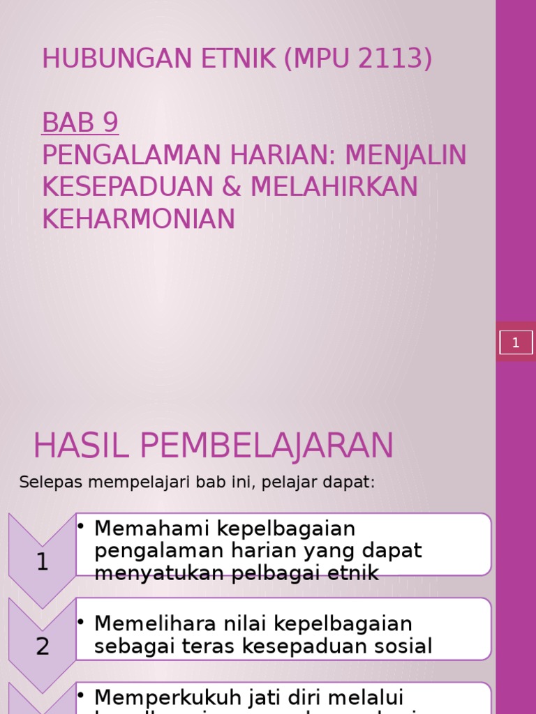 Hubungan Etnik Mpu 2113 Bab 9 Pengalaman Harian Menjalin Kesepaduan Melahirkan Keharmonian