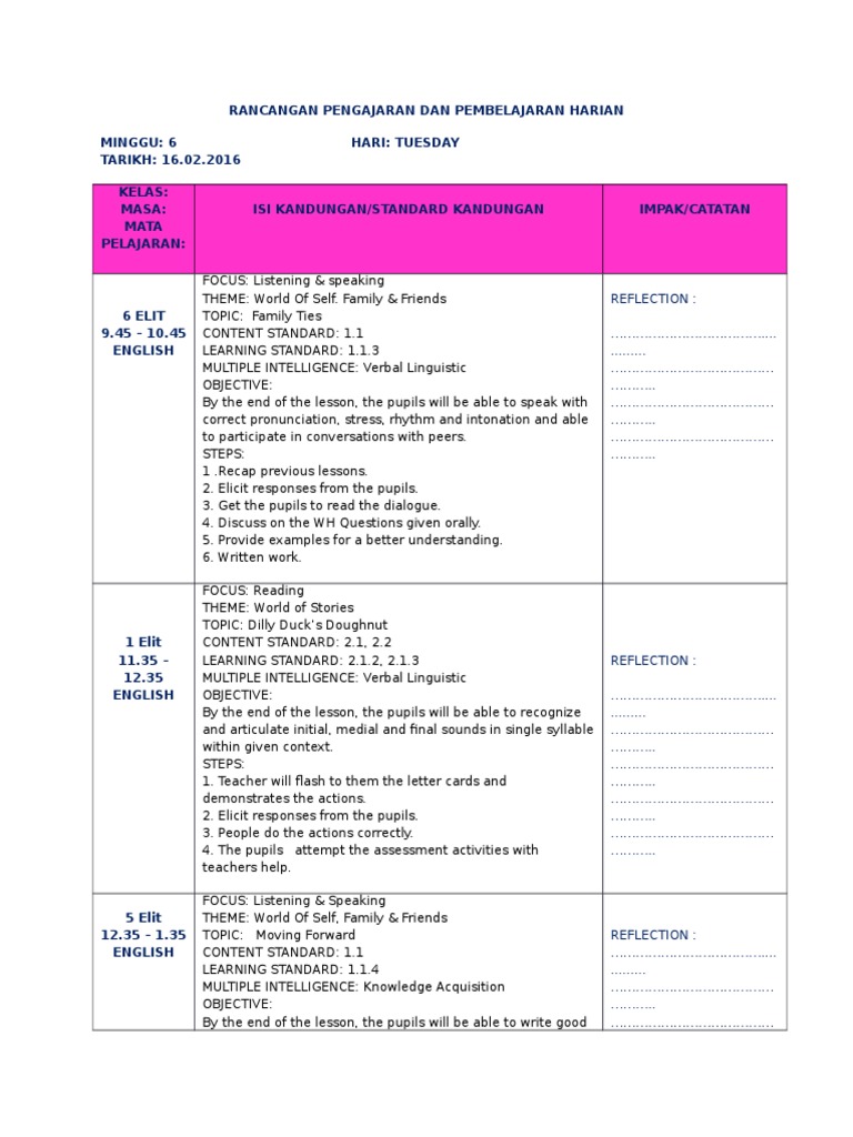 Lesson Plan 2013 Week 1 English Language Lesson Plan