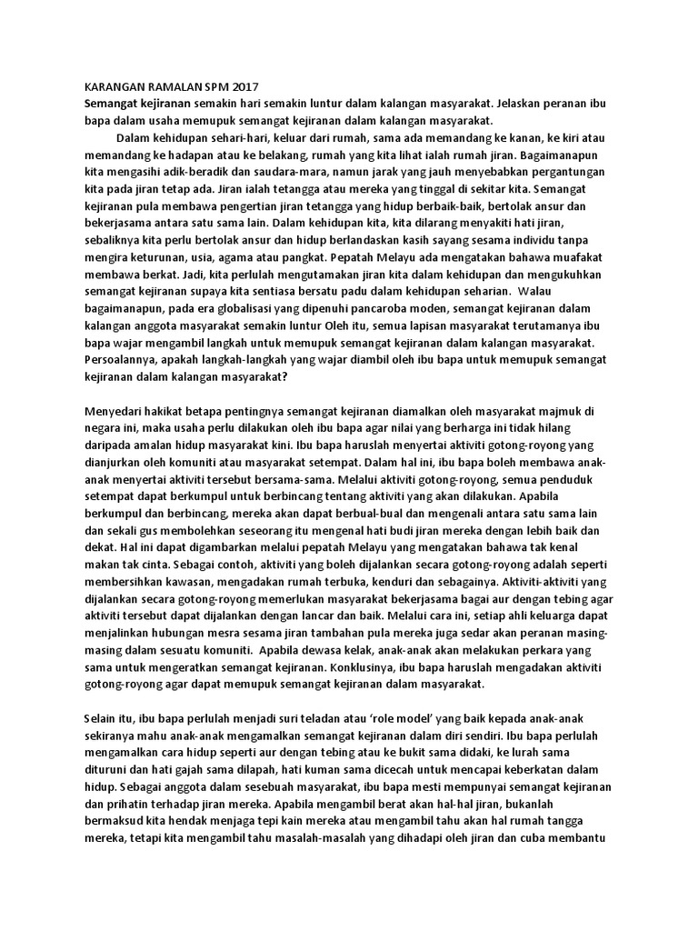 Karangan Ramalan Spm 2017