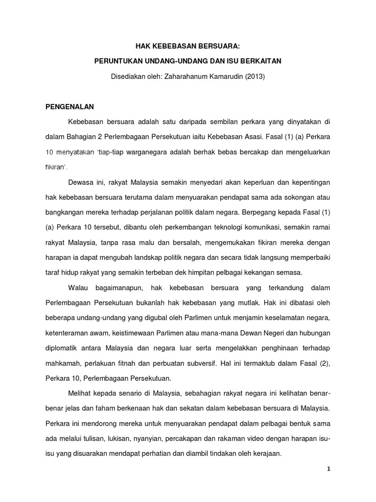 Hak Kebebasan Bersuara Dalam Konteks Pelbagai Kaum Di Malaysia Hak Kebebasan Bersuara Dalam Konteks Masyarakat Pelbagai Kaum Di Malaysia