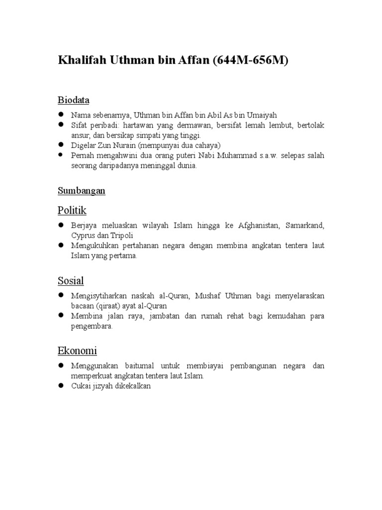 Sumbangan Khalifah Uthman Bin Affan By Nur Solehah Jalil