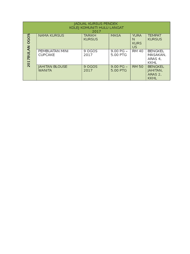 Takwim Kursus Pendek Mac Dah Keluar Kolej Komuniti Hulu Selangor Fan Page Rasmi Facebook