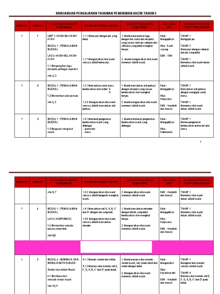 Rancangan Harian Muzik Tahun 5 2015 Ali Edit Docx Document