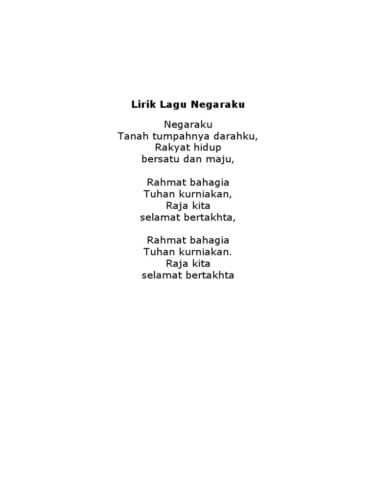 Lirik Lagu Lirik Lagu Negaraku Negarakutanah Tumpahnya Darahku Rakyat Hidup