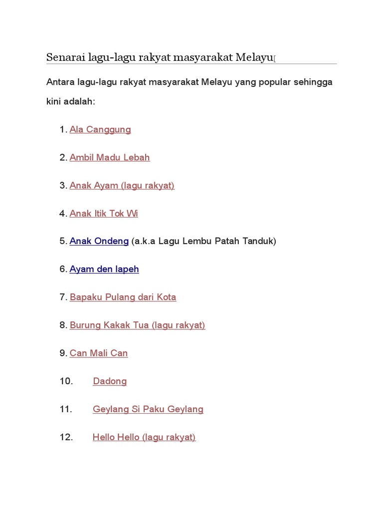 Lagu Kanak Kanak Lagu Rakyat