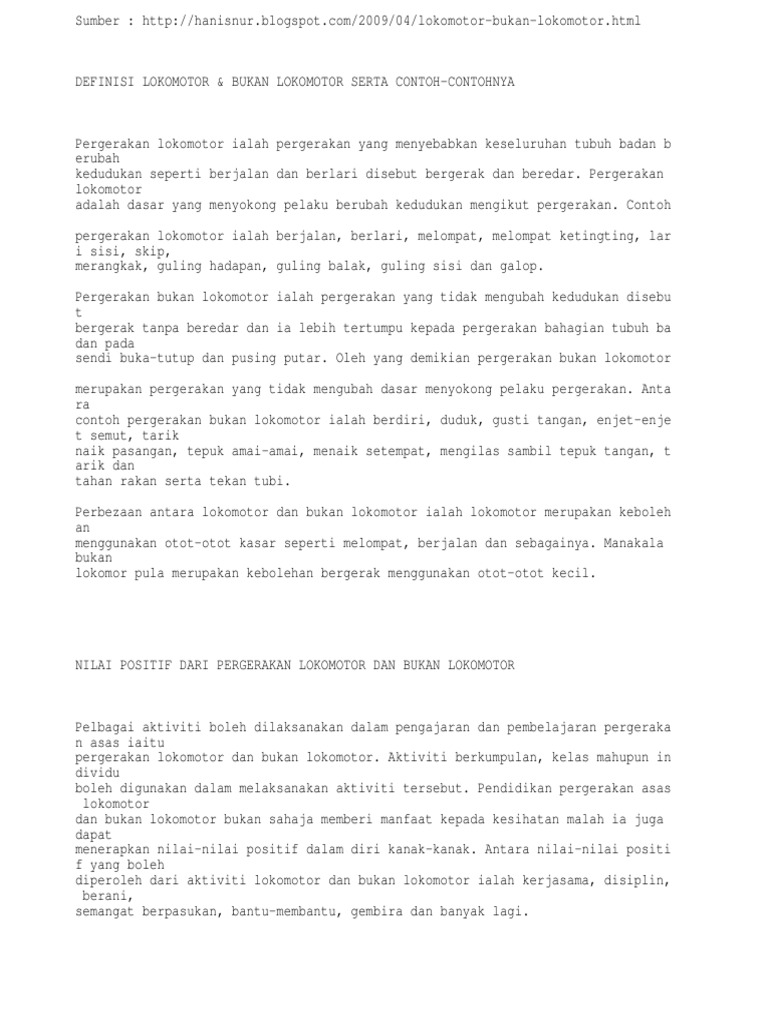 Definisi Lokomotor Dan Bukan Lokomotor