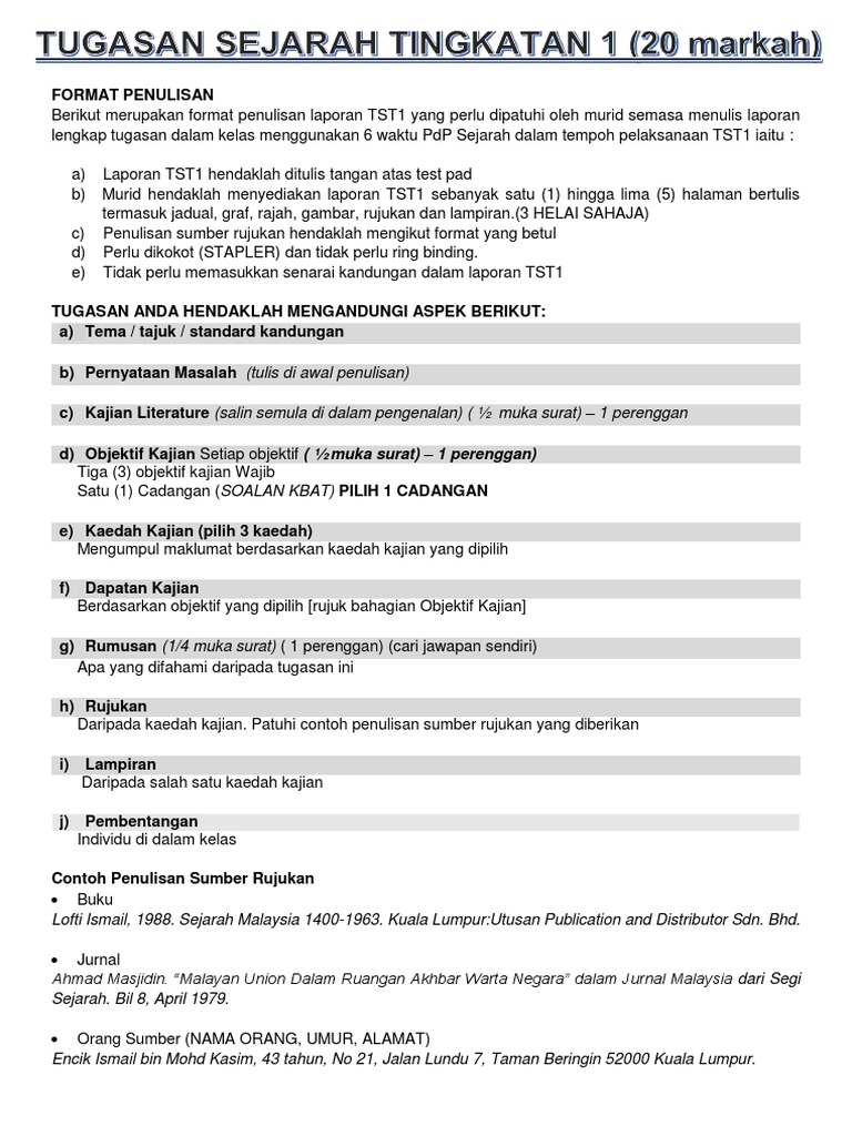 Kerja Kursus Sejarah Pt3 2020 Tingkatan 3 Contoh Terbaik