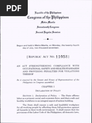 Ra 11058 Occupational Safety And Health Standards Oshs Act Pdf