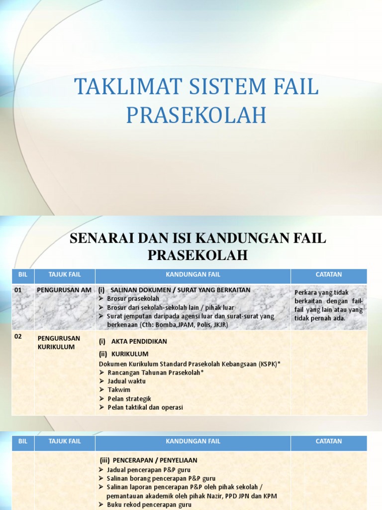 Senarai Dan Isi Kandungan Fail Prasekolah Pptx
