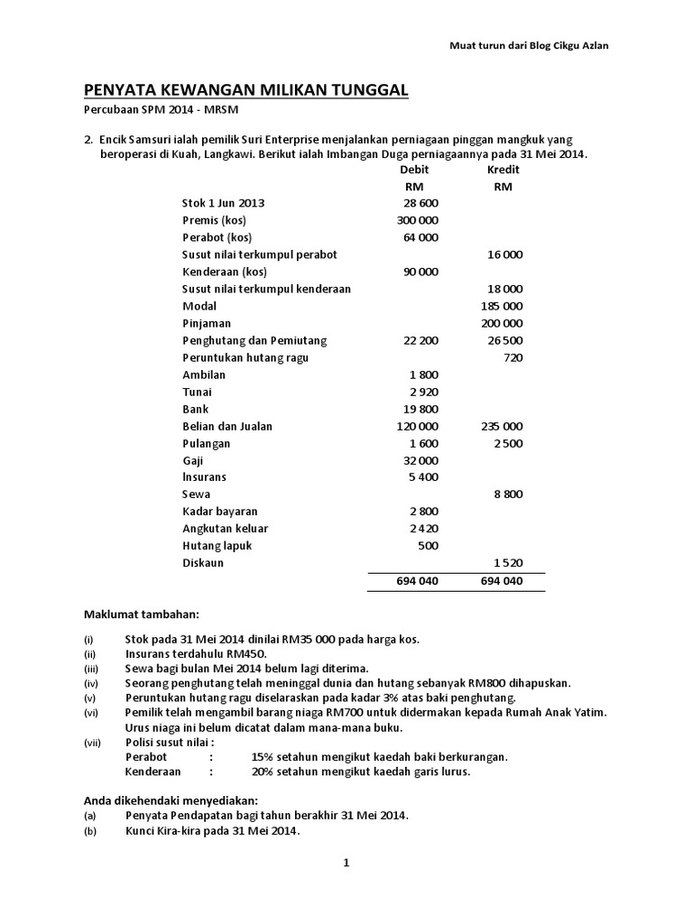 Pdf Muat Turun Dari Blog Cikgu Azlan Penyata Kewangan Milikan Tunggal Nora Sabri Academia Edu