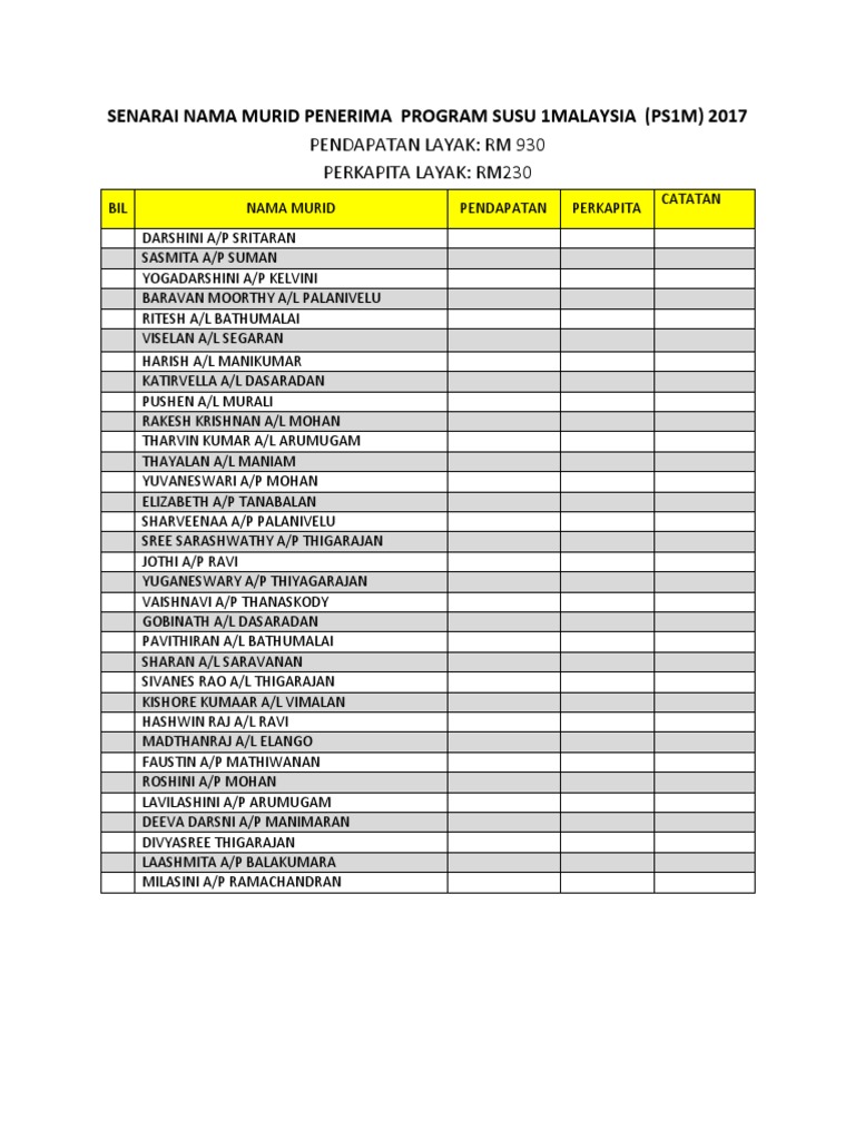 9 Senarai Nama Murid Penerima Program Susu 1malaysia Religion Spirituality