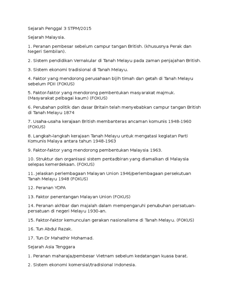 Sejarah Penggal 3 Stpm