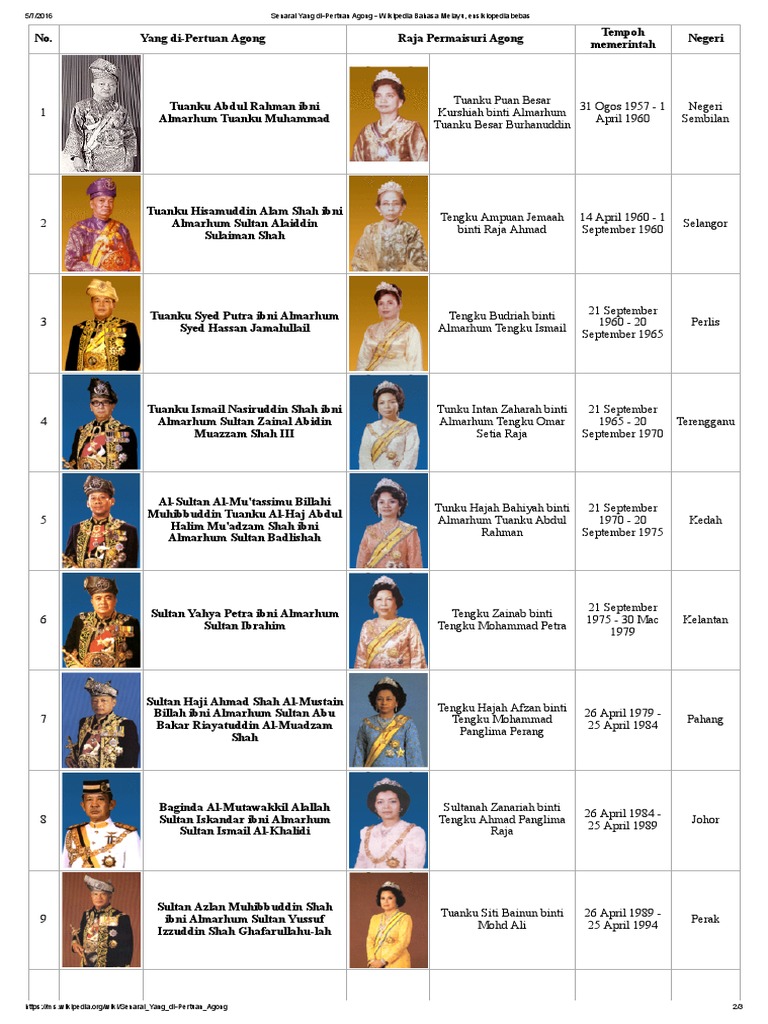 Yang Di Pertuan Agong Raja Permaisuri Agong Berikut Adalah Senarai Sejak Hingga Sekarang