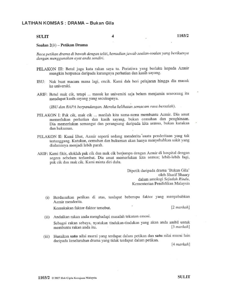 Doc Kritikan Terhadap Drama Komsas Bukankomsas Bukan Gila Karya Sharif Shaary Oleh Prof Madya Dr Andika Aziz Hussin Andika Aziz Hussin Academia Edu