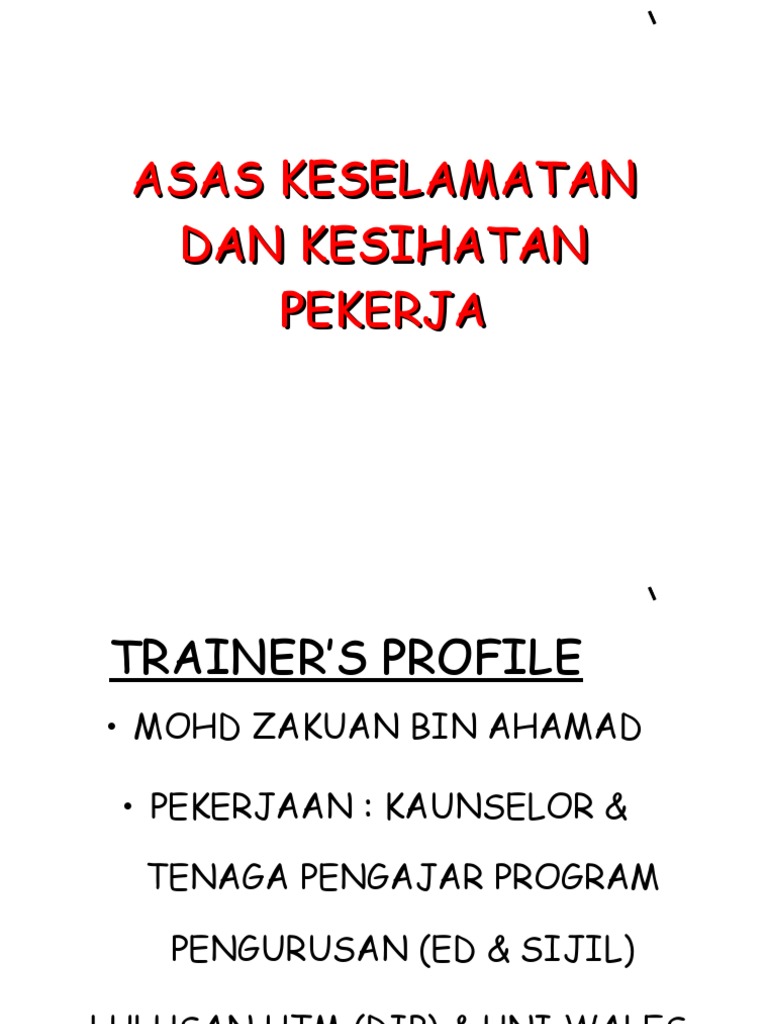 Asas Keselamatan Kesihatan Pekerja Keselamatan Laboratorium