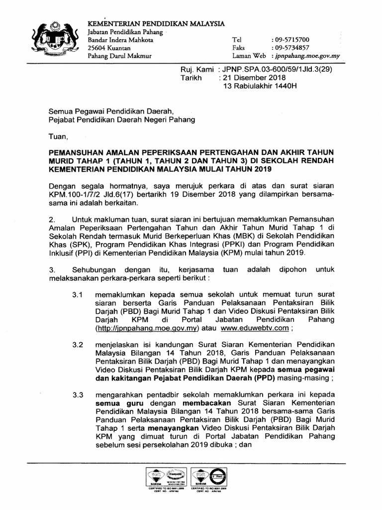 Update Muat Turun Surat Siaran Kpm Pemansuhan Peperiksaan Murid Tahap 1 Berita Malay 18 Berita Malay 18