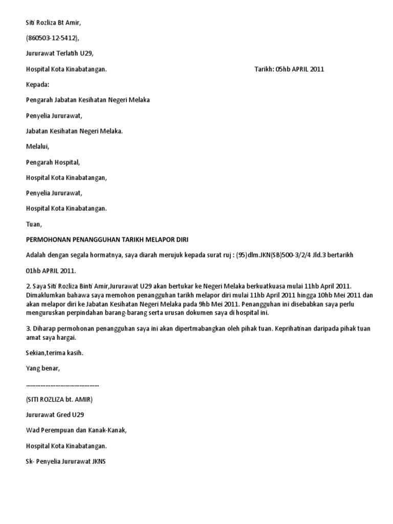 Tangguh Contoh Surat Penangguhan Lapor Diri