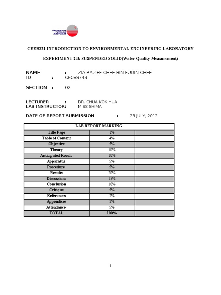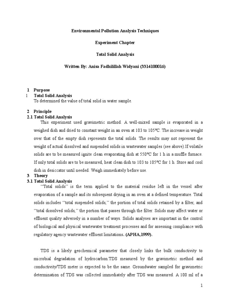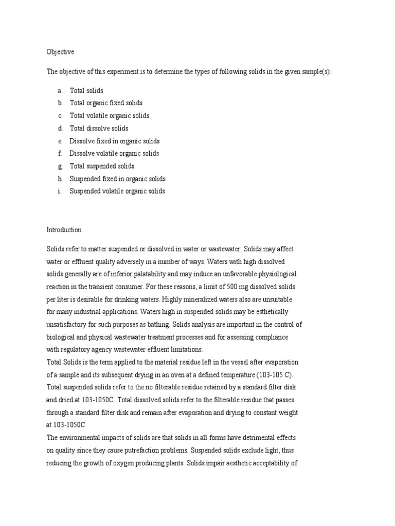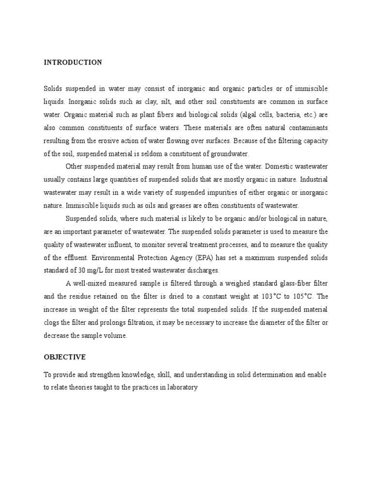 Total Suspended Solid Lab Report Scribd