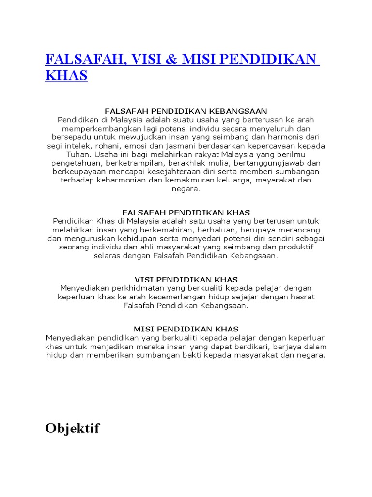 Visi Dan Misi Pendidikan Khas Di Malaysia