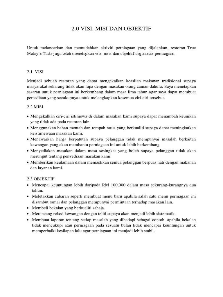 Bab 3 Visi Misi Dan Objektif Perniagaan Une Las Correspondencias